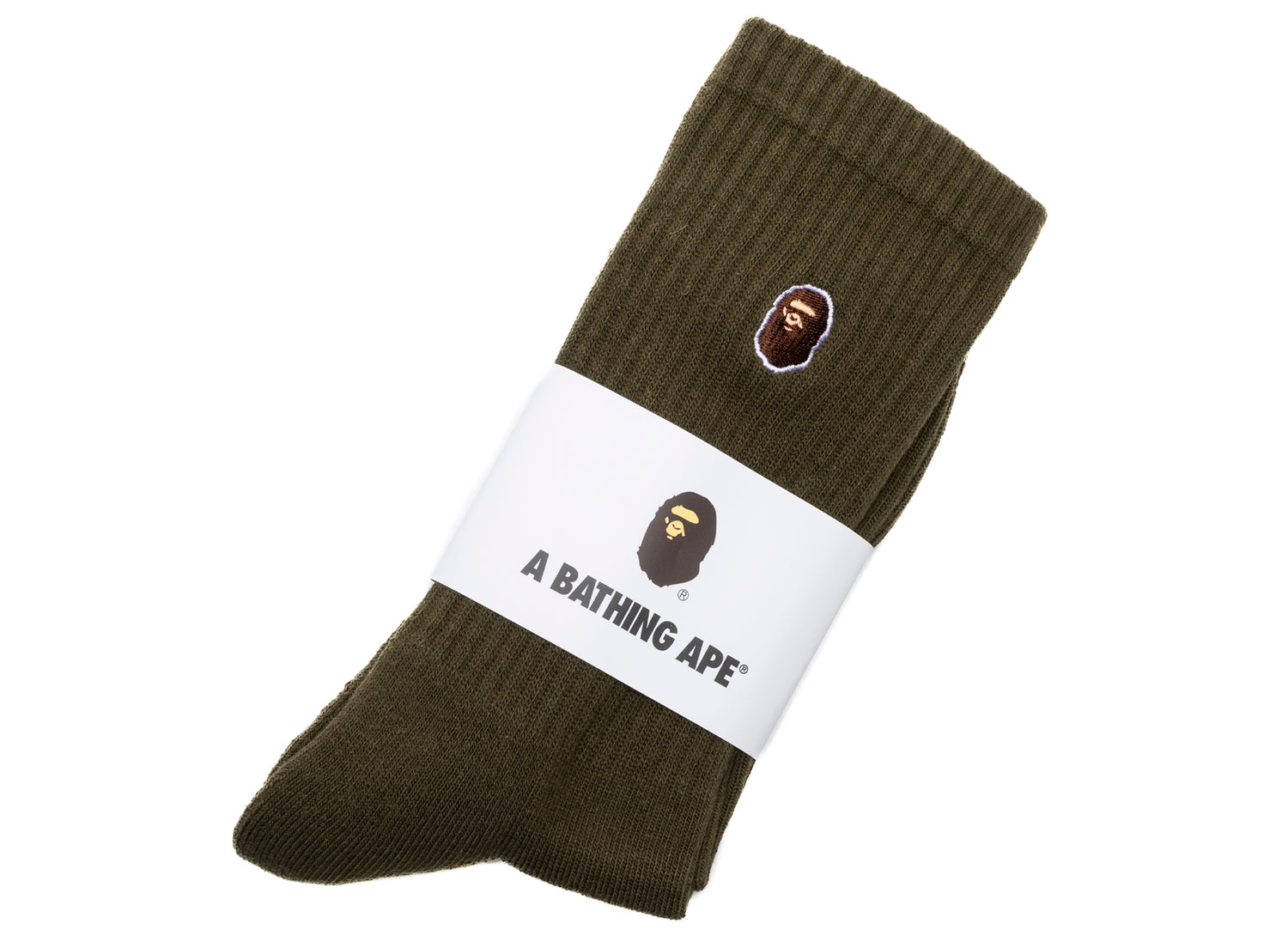 A Bathing Ape Ape Head One Point Socks in Olive