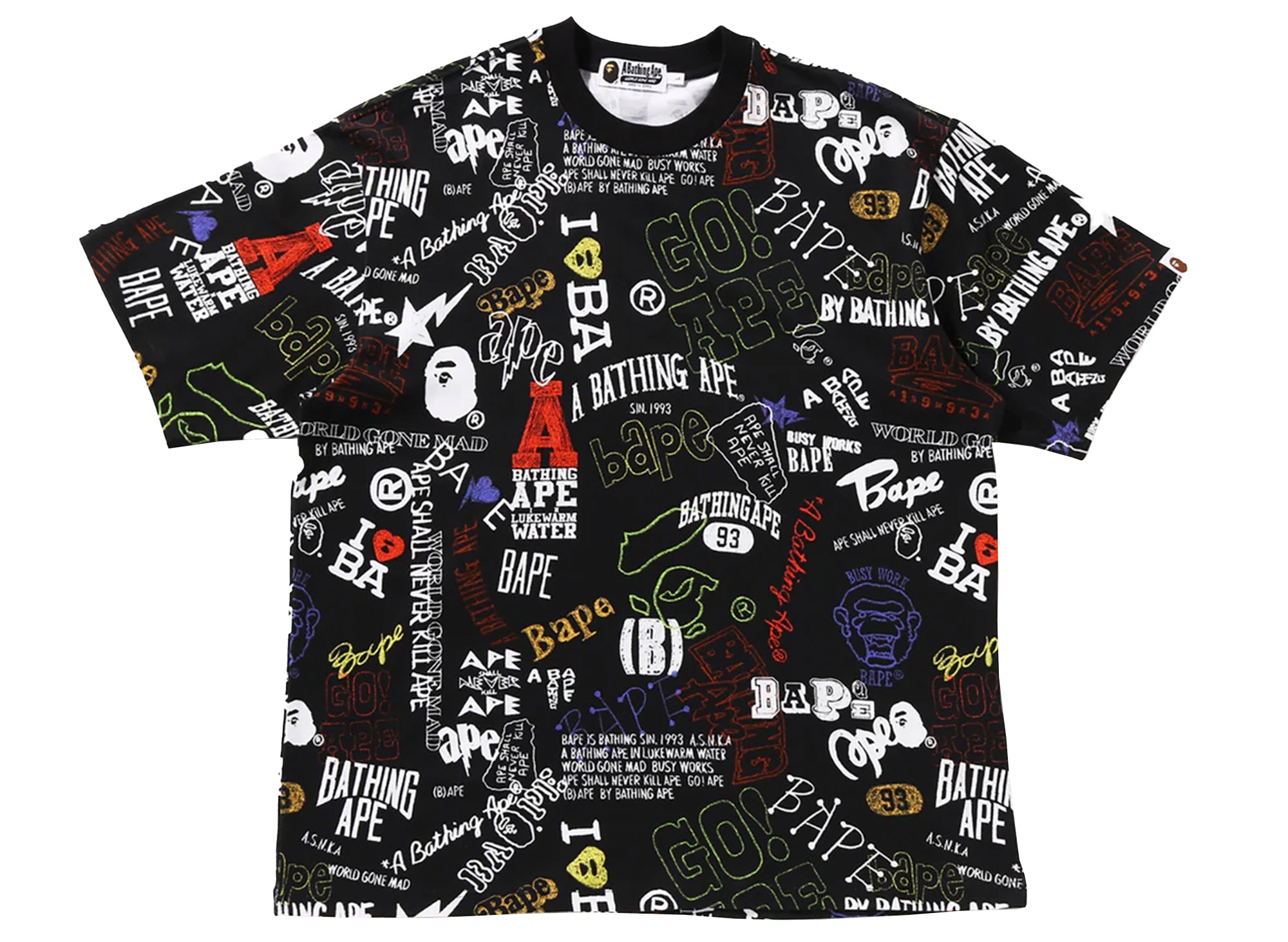 A Bathing Ape Hand Drawn Pattern Relaxed Fit Tee in Black