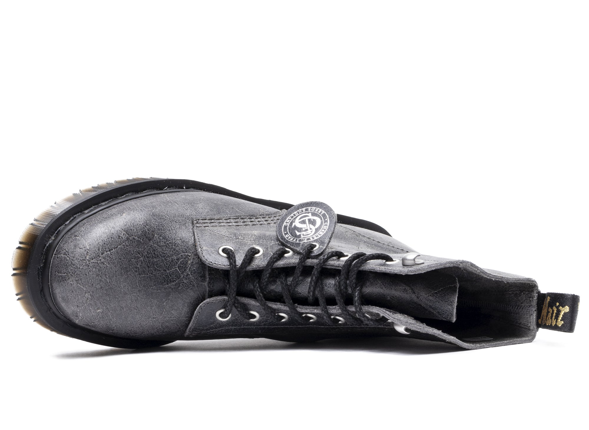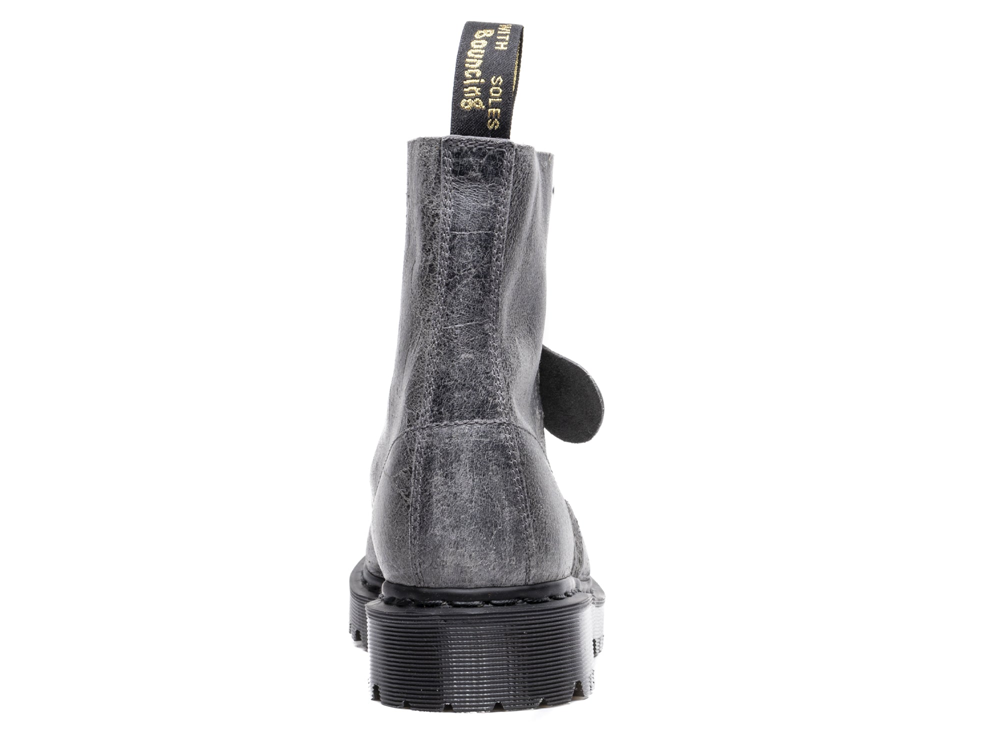 Our original factory in Northamptonshire honours over six decades of construction heritage — and elevates our classic silhouettes with premium materials from world-renowned tanneries. This 1460 boot is built from Crazy Pull Up leather from Leeds-based C. F. Stead. It’s durable, with a waxy finish, subtle sheen and deep colour. The boot stands on our rugged smoke Bex outsole with understated black welt stitching. Detailed with silver trims, a tannery swing tag and a black and gold heel loop.