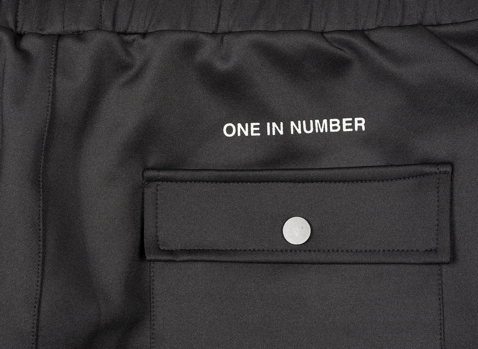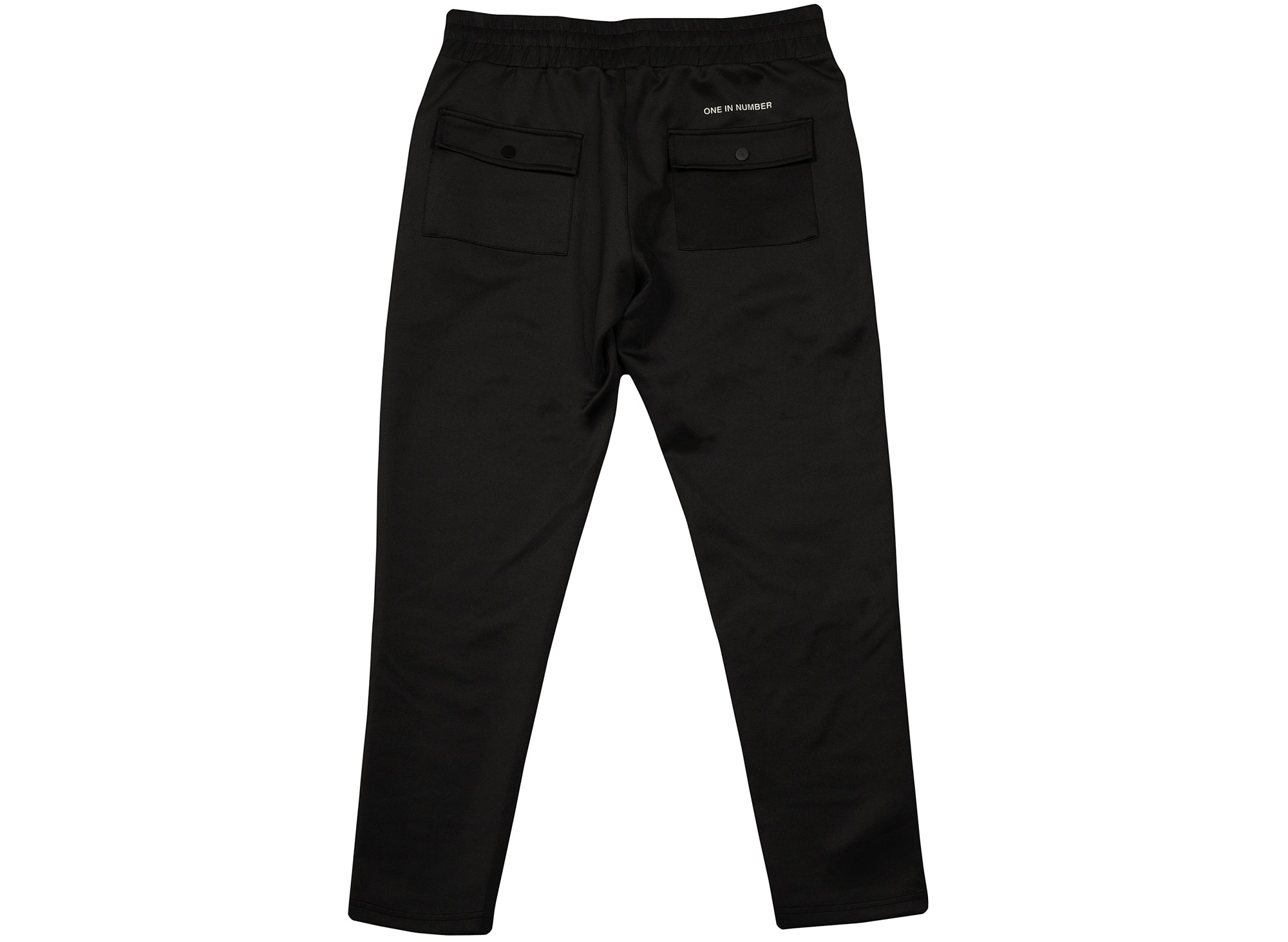 Oneness private label. Slim fit black straight-leg track pants with a Oneness "O" logo on the upper leg, along with our "One in Number' slogan above the pockets. Comes with zipper pockets on either side, with a button pocket on the back. Fits slightly slim. Premium quality.Couldn't load pickup availability